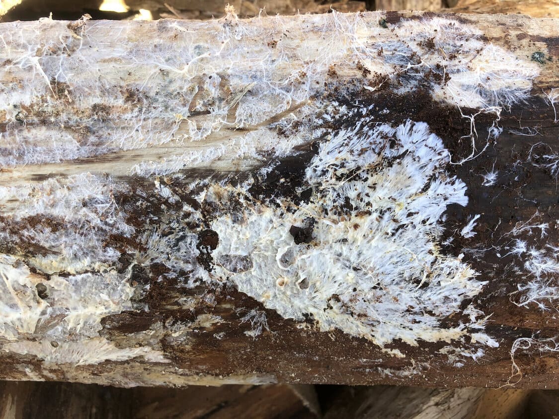 Príklad plesne na palive. Ak jasne vidíte pleseň na palive, okamžite ho zahoďte. Toto drevo nie je vhodné na spaľovanie. Obrázok pochádza z Mapleseed.farm.