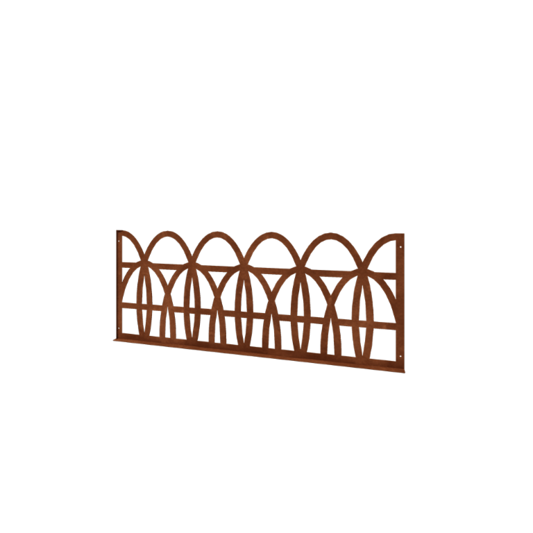 Tento panel z cortenovej ocele je dekoratívne riešenie na ohraničenie zóny transparentným spôsobom s jedinečným vzhľadom.