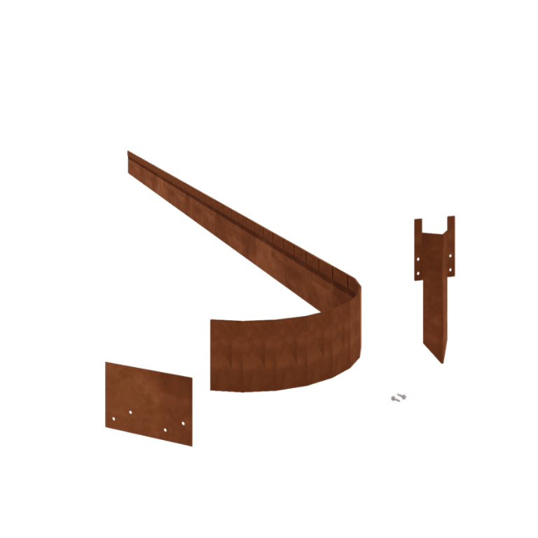 Záhradný obrubník je vyrobený z 1,5 mm hrubej lisovanej cortenovej ocele a má výšku 13 cm na kus. Kompletná sada s dĺžkou 15 metrov obsahuje aj montážne materiály, ktoré umožňujú pevné a jednoduché upevnenie. Získate tak dlhý a jednotný okraj okolo záhonov.