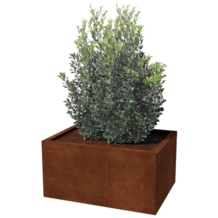 Panely našich modulárnych kvetináčov sú vyrobené z kvalitného Corten-A oceľového plechu. Tento typ kovu má jedinečnú vlastnosť, že vytvára veľmi hustú oxidačnú vrstvu (hrdzavú vrstvu) . Prehnívanie je preto nemožné. Vďaka hustej oxidačnej vrstve je hlbšie ležiaci materiál chránený pred kyslíkom, čím sa oxidácia výrazne spomaľuje, zatiaľ čo korózia pokračuje. Kvetináč z cortenovej ocele je dodávaný nehrdzavejúci, v šedej kovovej farbe. Proces hrdzavenia začína po niekoľkých týždňoch až 2 mesiacoch, na to nie je potrebná žiadna úprava. Počas procesu hrdzavenia môže kvetináč zanechať stopy. Cortenová oceľ je zliatina kovu, ktorá sa skladá z železa, ku ktorému boli pridané meď, fosfor, kremík, nikel a chróm.