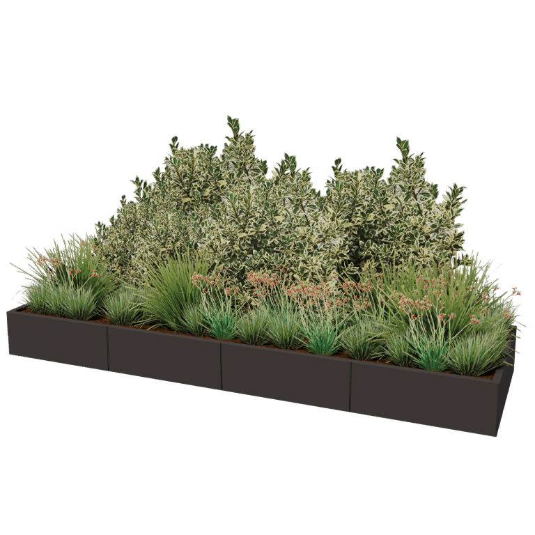 Tento kvetináč je modulárny oceľový kvetináč, ktorý sa dodáva ako stavebnica. Kvetináč sa skladá z voľných panelov a rohových kusov. Kvetináče sa dajú úplne bez viditeľných spojení. Vďaka nášmu modulárnemu systému sú možné aj veľmi veľké rozmery. Použitím rohových kusov sú možné jedinečné tvary, ktoré nie sú nikde inde štandardne dostupné. Pozrite si príručku pre viac informácií.
