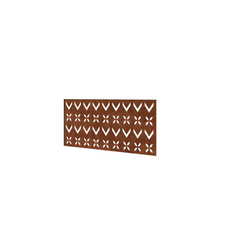 Panel má rozmery 120 x 63,3 cm a je vyrobený z 2 mm hrubej platne cortenovej ocele. Skladá sa zo silného H-profilu s vertikálnymi prvkami, ktoré zabezpečujú stabilitu a moderný vzhľad. Panel sa dodáva bez montážneho materiálu, aby ste si mohli zvoliť upevnenie, ktoré najviac vyhovuje vášmu konkrétnemu riešeniu.