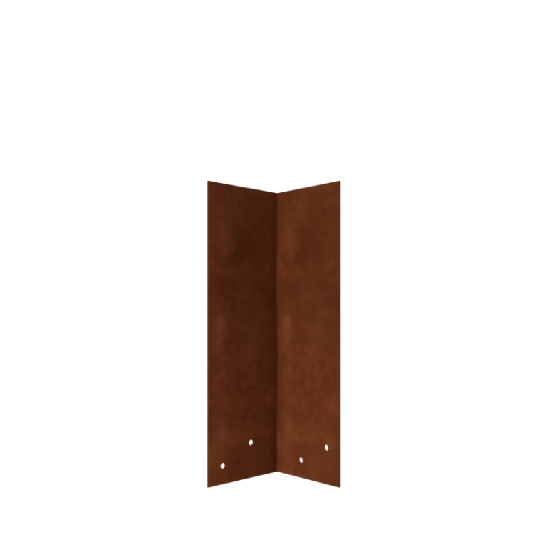 Tento spojovací plech je vyrobený z kvalitného Corten-A oceľového plechu. Tento typ kovu má jedinečnú vlastnosť, že vytvára veľmi hustú oxidačnú vrstvu (hrdzavú vrstvu). Prehnívanie je preto nemožné. Vďaka hustej oxidačnej vrstve je hlbšie ležiaci materiál chránený pred kyslíkom, čím sa oxidácia výrazne spomaľuje, zatiaľ čo korózia pokračuje. Spojovací plech je dodávaný bez hrdze, v sivej kovovej farbe. Začiatok procesu hrdzavenia nastáva v prvých 2 mesiacoch, na to nie je potrebná žiadna úprava. Počas procesu hrdzavenia môže obrubník zanechávať stopy. Cortenová oceľ je zliatina kovu, ktorá sa skladá z železa a obsahuje meď, fosfor, kremík, nikel a chróm.