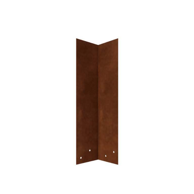 Tento spojovací plech je vyrobený z kvalitného Corten-A oceľového plechu. Tento typ kovu má jedinečnú vlastnosť, že vytvára veľmi hustú oxidačnú vrstvu (hrdzavú vrstvu). Prehnívanie je preto nemožné. Vďaka hustej oxidačnej vrstve je hlbšie ležiaci materiál chránený pred kyslíkom, čím sa oxidácia výrazne spomaľuje, zatiaľ čo korózia pokračuje. Spojovací plech je dodávaný bez hrdze, v sivej kovovej farbe. Začiatok procesu hrdzavenia nastáva v prvých 2 mesiacoch, na to nie je potrebná žiadna úprava. Počas procesu hrdzavenia môže okrajový rám zanechávať stopy. Cortenová oceľ je zliatina kovu, ktorá sa skladá z železa a obsahuje meď, fosfor, kremík, nikel a chróm.
